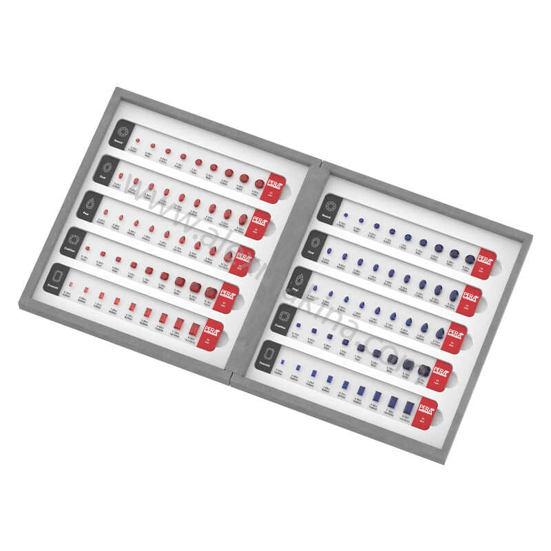 *The set includes two different colors and shapes: Round, Oval, Pear, Cushion and Emerald. Each stone has 9 different size of stone.